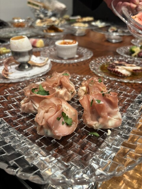 豪華絢爛アメアラレなワゴンサービスが特徴的。目が回ります。住所連絡先非公開の秘密のイタリアンです。とても美味しいので機会あればとてもオススメのお店。店名のチンクエメッゾは数字の5と... 詳細を見る
