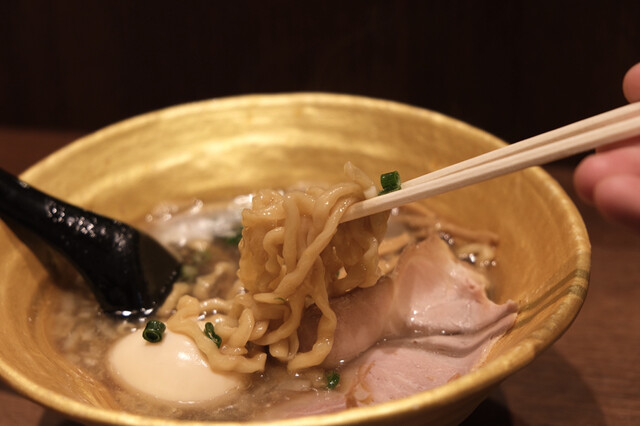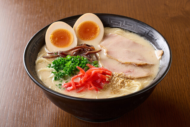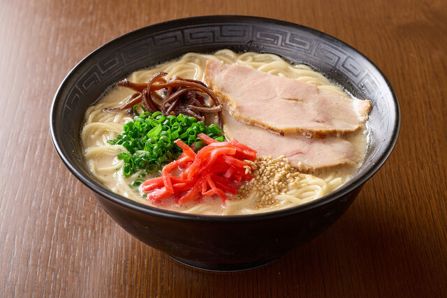 細麺と豚骨スープの組み合わせで提供するらーめんは、スープの滑らかな旨味と麺ののど越しが抜群。