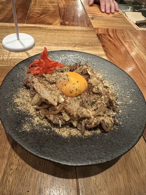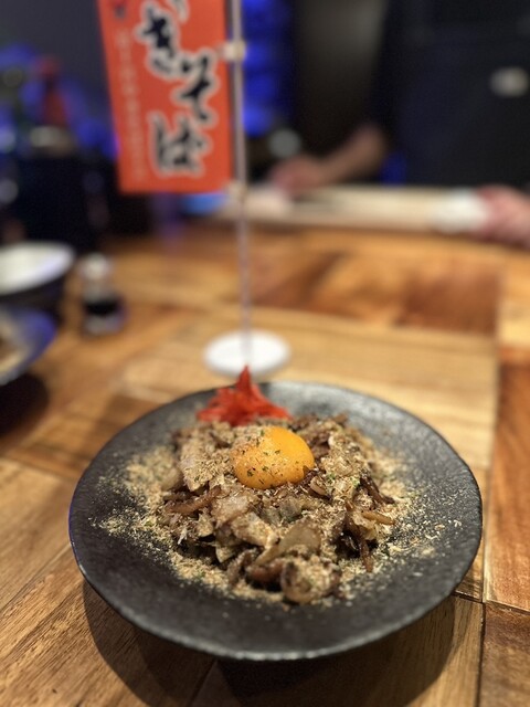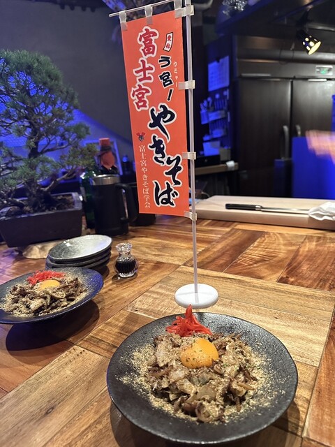 卵黄をのせた、本格的な「富士宮焼きそば」をご提供