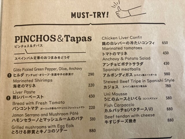 ピンチョス(鉄板スペイン串)がおススメとのことなので