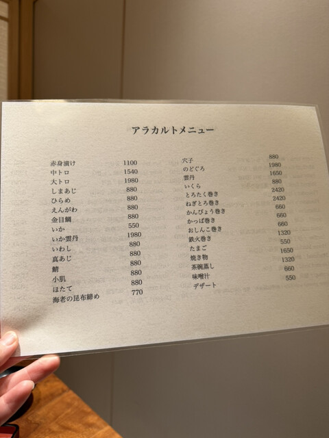 同じ店内に、鮨まつもとさんもあります。個室からカウンター鮨が見えてお鮨たべたい欲が増してきます笑 お鮨のアラカルトメニューがあるようでしたので注文させていただきました✳︎
