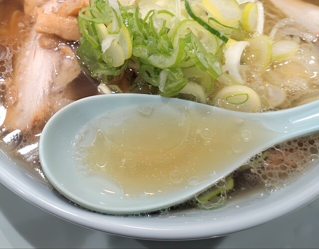 なみなみと入れられた清湯スープがめっちゃ美味...