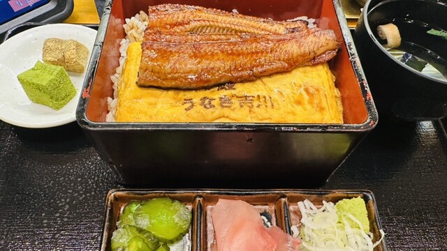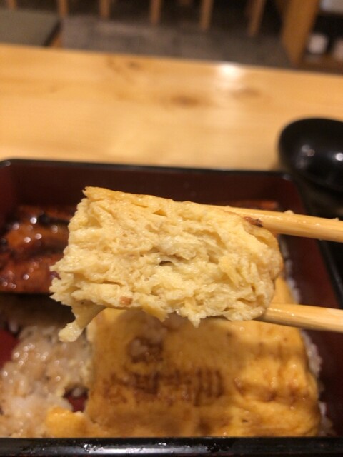 名物の【うな玉重】は、ふわふわのだし巻き玉子の上に