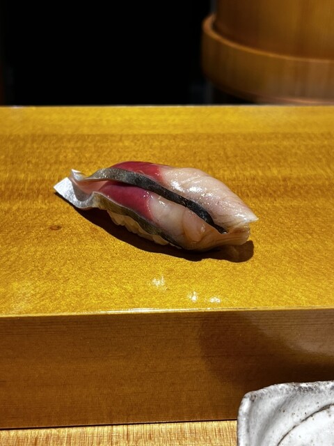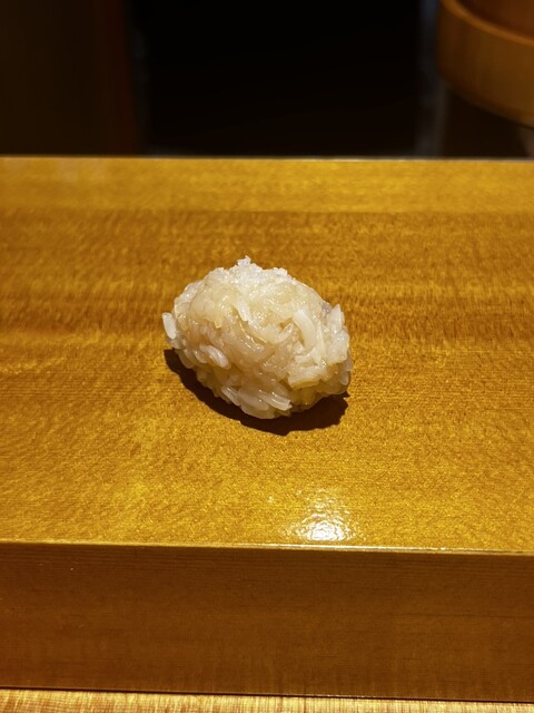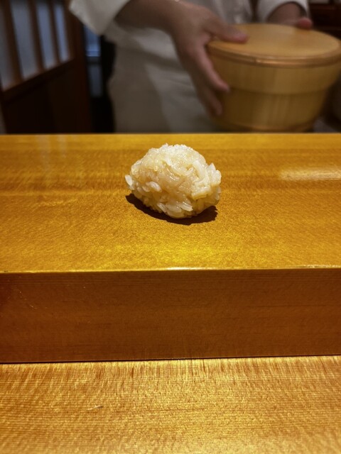 シャリは純米酢と赤酢を混ぜているということです。しっかりした味です。そこまで赤酢が強いとかではないです。シャリはほんの少し柔らかめなのかな?