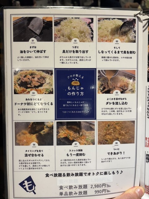 ②もんじゃ食べ放題、飲み放題コースが2,508円〜と破格