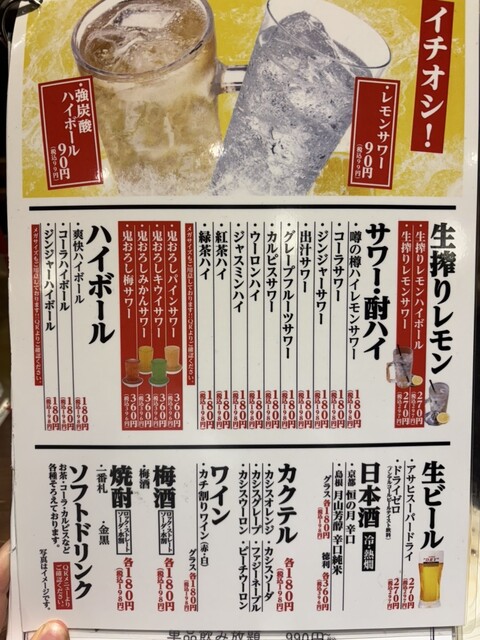 アラカルトでも、20種以上のもんじゃが全て1,089円だし、ハイボールやレモンサワーは99円!