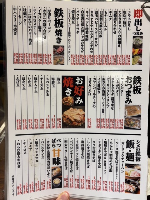 ①もんじゃ1,089円、アルコール99円の激安酒場