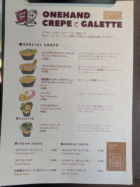 ガレット好きだけど、クレープのこのスタイルが気になり、クレープをチョイス。