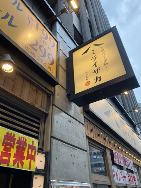 和民から業種を転換させ 唐揚げを中心とした居酒屋「ミライザカ」 博多口から歩いてすぐのところにあります 店内はかなり広く半個室がかなりあって少人数でものんびり飲めます ... 詳細を見る
