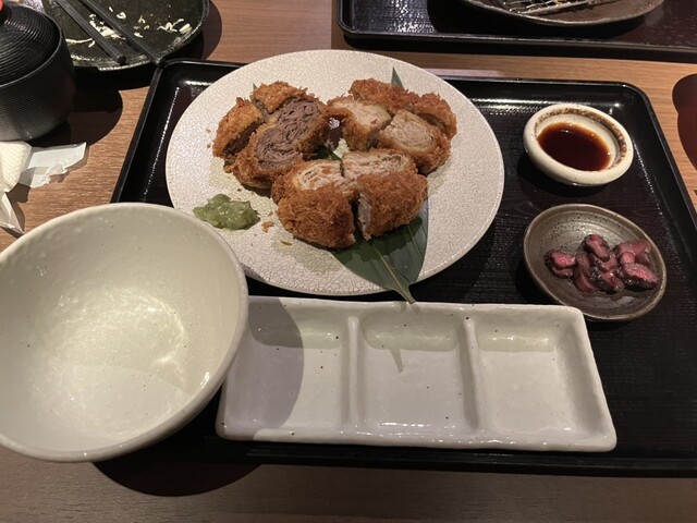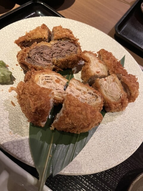 和牛と黒豚の肉の旨味、脂の甘味を感じられる最上級のミルフィーユカツが両方味わえる贅沢な極みコースをお楽しみ下さい。