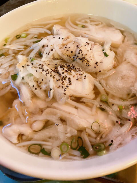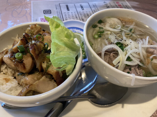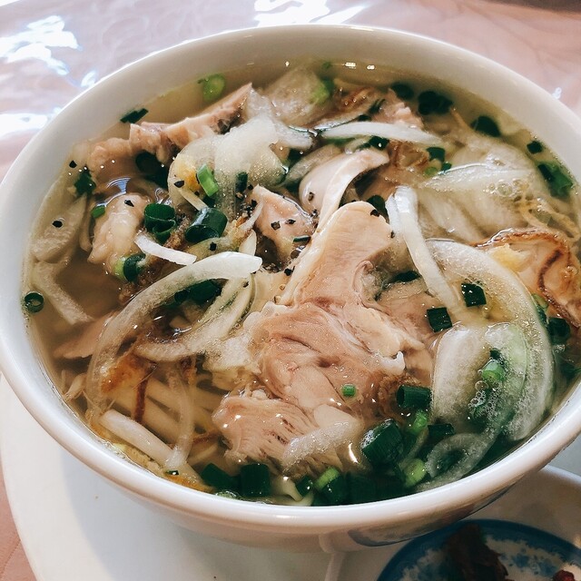 私は蒸し鶏のフォーにマンゴージュースにしました。...