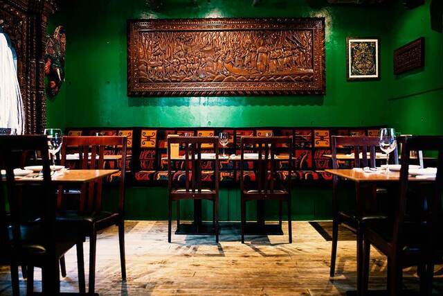 お店はJR恵比寿駅西口から 徒歩3分。1階から6階まで全フロアがレストランという珍しい一軒家スタイル。建築賞を受賞したこともあるエキゾチックな外観と、異国情緒あふれる内装。