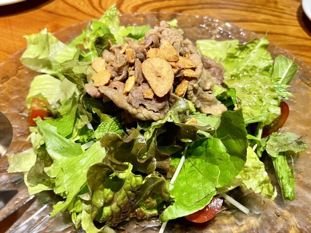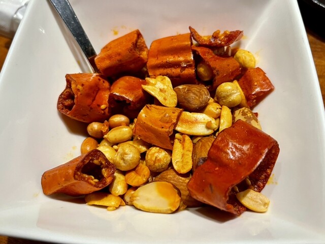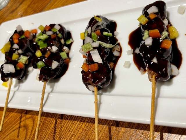 特別感溢れる、でですけの和ジア大満足コースです。 和食とアジアの融合。 本日のお造り、当店が誇るよだれ鶏、水餃子、春巻き、串焼きなど でですけの厳選されたコース内容となっております。 150分の滞在時間なのでお時間もごゆっくりお寛ぎいただけると幸いです。 接待、大事な会食などにご利用くださいませ。 こちらのメインは牛となっております。