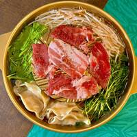 アジアからの新メニュー、タイ風よくばり鍋 ~ムーガタ鍋~ 焼肉としゃぶしゃぶを同時に楽しめるコースになっております。 でですけWajiaの新常識。ぜひお召し上がりください。