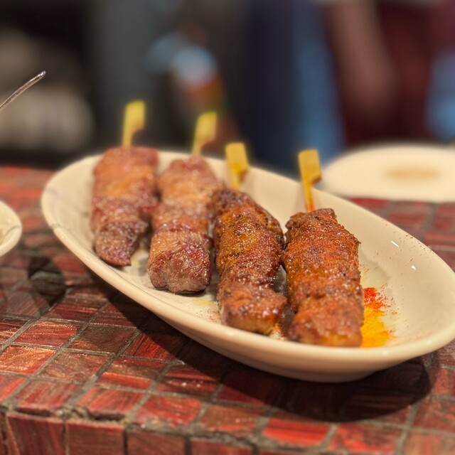 カウンターメインのお店で、大人のカップルがほとんどな印象です。 お通しで生ハムとチーズが出ますが、やはりハモンイベリコは外せません。 噛むほどにジューシーな脂とコクを感じます。 王道の品以外に、季節ものではオイスターと秋刀魚の串を注文。 どちらも美味しく頂きました。 お肉は串の... 詳細を見る