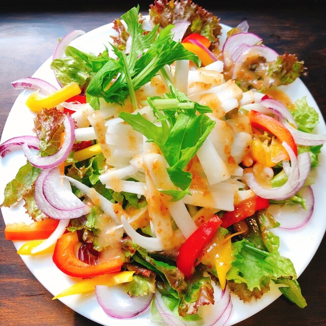 シャキシャキ大根とオニオンスライスの梅サラダ (by お店)