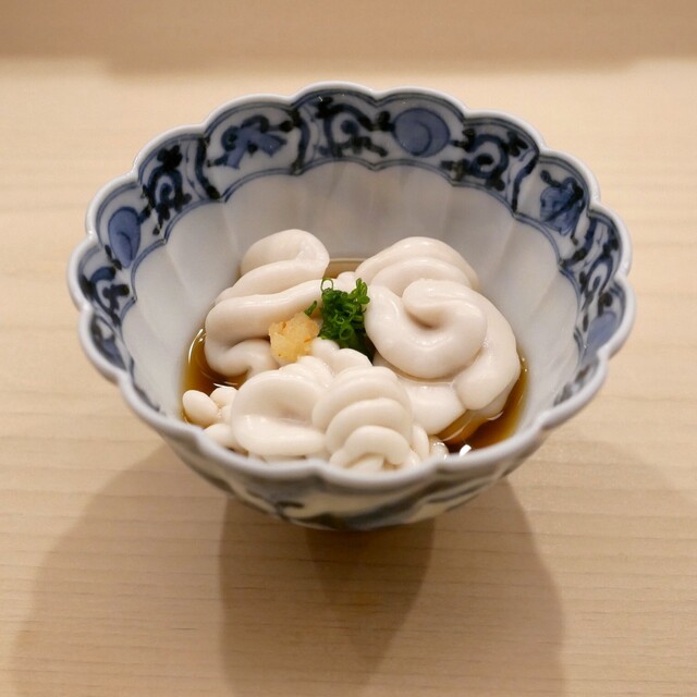 都内の鮨屋の中でも特に予約難度が高いことで知られる「日本橋蛎殻町 すぎた」。2017年のミシュラン東京では、初の一つ星を獲得した。鮨やつまみの秀逸さだけでなく、杉田孝明氏の物柔らかな人柄や細かやな気遣いのある接客も訪れた人々を魅了し続けている。つけ場に立つ杉田氏は、明治20年創業の老舗「日本橋蛎殻町 都寿司」にて修業。軽めの漬けで出す大間のマグロ、酢締めにする天草のコハダなど、魚は毎日通う築地で上...質な産地から選ぶ。また、赤酢や煮きり醤油を使うなど、伝統の江戸前を継承するための創意工夫も忘れない。品書きは、つまみと握りで構成された「おまかせコース」一本のみ。絶妙な口ほどけが心地良い一貫に酔いしれ、無駄のない流麗な握りの所作に心を奪われるはずだ。