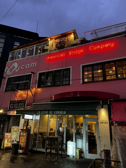 右折してアメリカ橋を渡り右側1軒目のピンク色のビル3F