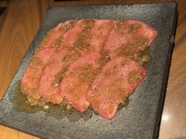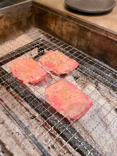 本日はコースをいただきました! ①前菜は、初菜 2種(わらび・もやし)と、 佐賀牛の炙りのたたき 佐賀牛を軽く炙ってあるだけなので、新鮮で美味しかった ②塩茹でしたタン 塩茹でしてあるので、タン臭さがなくマイルドなお味 ③兜サラダ ドレッシングが美味しい! ④上タン塩... 詳細を見る