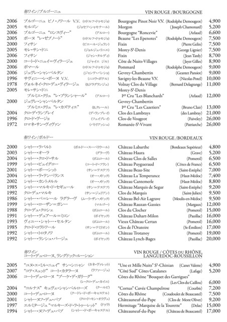 ワインリスト:赤ワイン(*随時変更) (by お店)