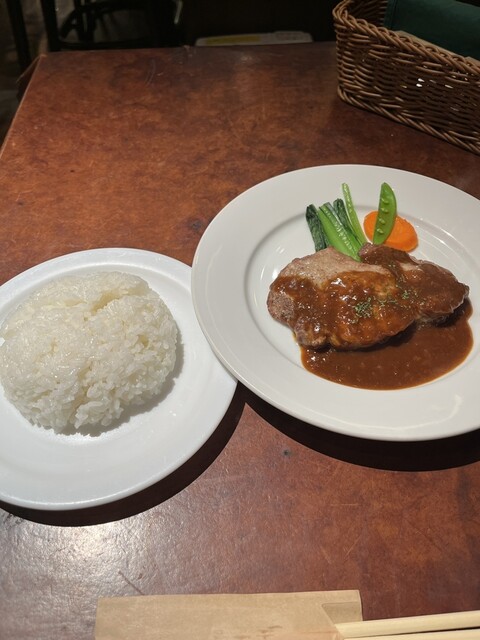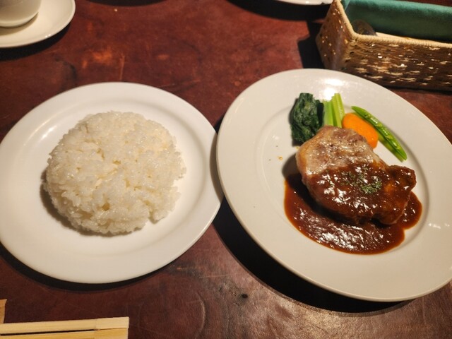 お目当ての店が閉まっていて、どうしようかとふらっと。ドラゴンライスって何?と気になりながら、日替わりのポークソテーが美味しそうなので、そちらを注文。ソースも選べるようでデミグラスに。