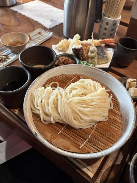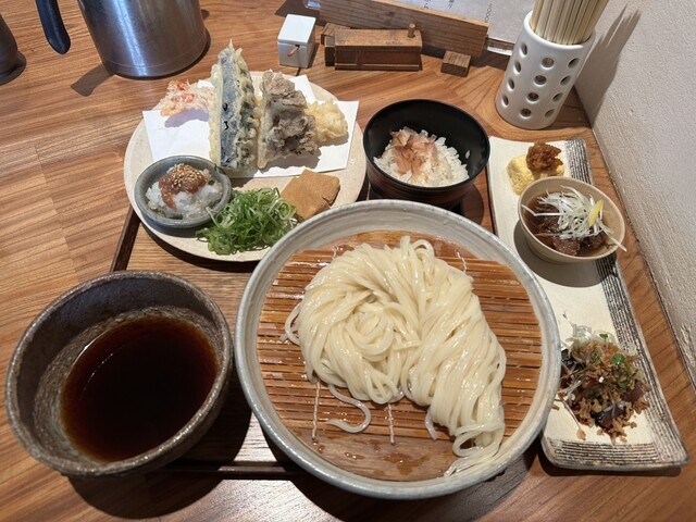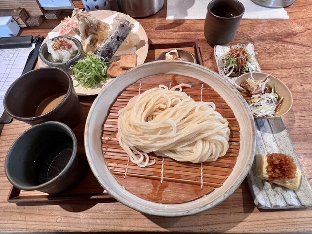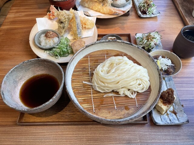 ランチセット3000円を注文しました、前菜と温物と天ぷらとうまいうどんと、やたらと贅沢なセットだなと思いました。どれも美味しくて、うどんだけじゃないんだな...