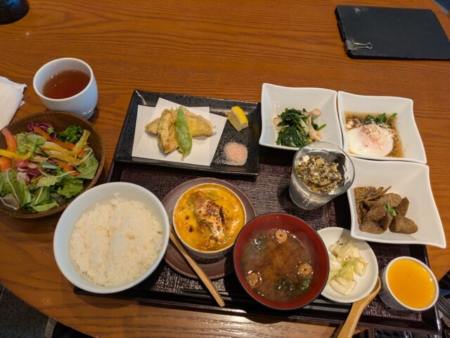2025.11 恵比寿駅西口の ゆらり へ。 昔来た場所?と思ったのでログを遡ってみたら、階は違いますが農家の台所恵比寿店の場所でした。 ◆旬の野菜料理を盛り込んだ野菜膳(¥1350) 肉メインと迷って、一日5食限定の野菜膳をチョイス。 全景写真のとおり多種盛ワンプレートで、乗り切らないサラダはプレートの左側に別出しするという圧倒的なビジュアル。 プレートに乗っているのは... 詳細を見る