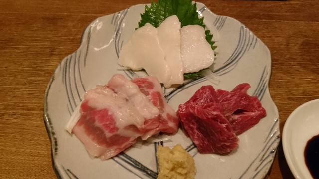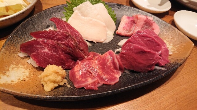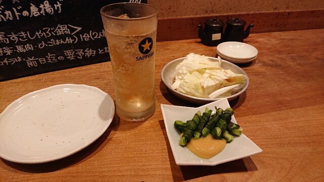 本店フレーゴリでも扱っている熊本産馬肉をいろいろなかたちで味わえます♪九州の人気メニュー、チキン南蛮・鶏天・手作りの辛子蓮根など人気のある一品の数々。 お酒は勿論熊本王道焼酎は外していません! 〆の馬骨ラーメン・馬骨ちゃんぽん・太平燕も大人気! (※ラーメン屋さんではないのでお食事の後の〆でのご提供) ★馬肉は…牛肉よりも甘くて低カロリー低脂肪、高タンパク、高ミネラルと美容効果が高いんです。 九州...にいる感覚で本物の馬肉と焼酎を是非お楽しみ下さい☆