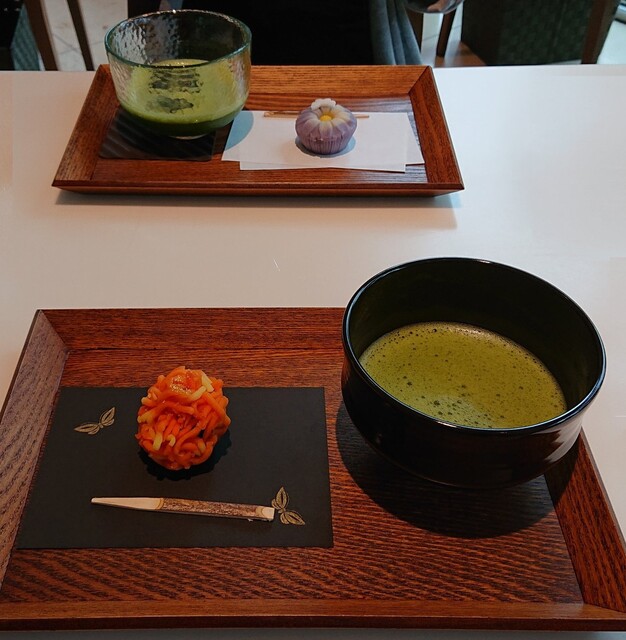 茶色の文様がとても美しい茶碗と抹茶の緑色とのコントラストも美しくて、とても素敵なセッ...