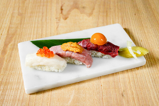「生肉が食べたい。」根強いニーズがある中で、昨今は提供できる店舗は非常に少なくなってきました。そんな中、生で食することが唯一認可されている「馬肉」を、日本人が愛する料理「寿司」でぜひ堪能してみてはいかがでしょう。メニューの寿司ネタは上から下まで全て肉。スタンダードな握り~斬新な組合わせの変わりダネまで、あなたのお気に入りがきっと見つかります。