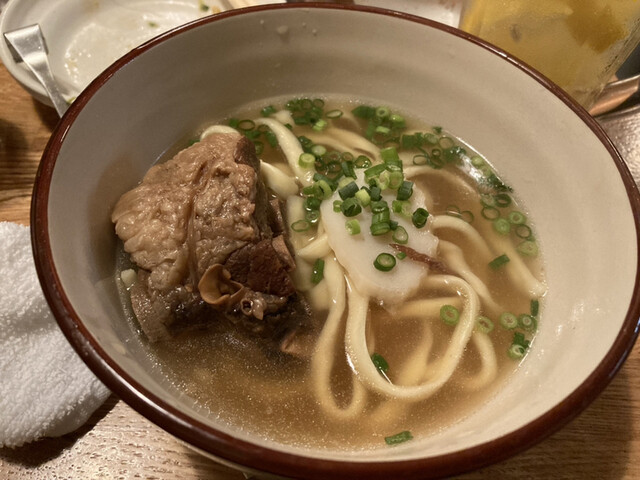 急に本格的な沖縄そばを食べたくなって、近隣で沖縄料理屋を調べたら沖縄に本店があるというこちらを発見。この道はよく通るのに、地下だからか店の存在に気づいていませんでした。階段を降りていくと右側に座敷、左側はテーブルとカウンター席が奥まで続く案外広い店内。沖縄そばだけ食べて帰ろうと思っていましたが、日曜夜の遅い時間で自分以外に客がいなかったので、ちょっと飲んでいくかとモードチェンジ。泡盛シークワーサー...
