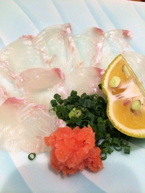 平目 うす造り かぼすとポン酢で (by お店)