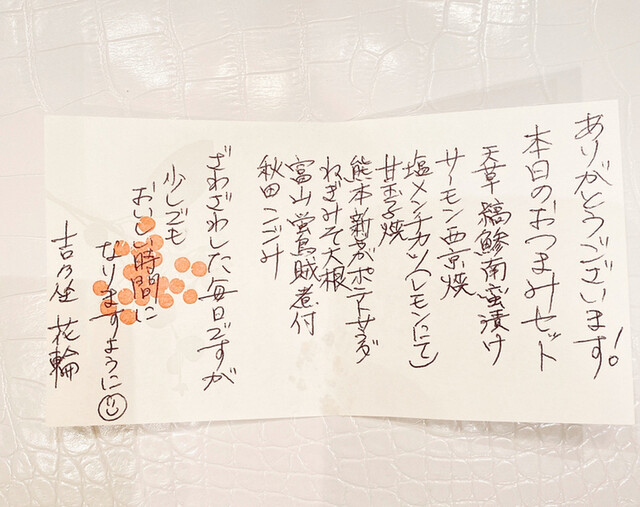 美味しいご飯とお酒とおもてなしを、本日もありがとうございました。