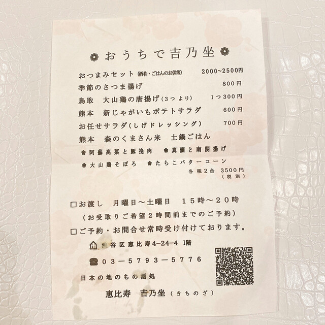 恵比寿で大好きな創作和食の「吉乃坐」さんへ久しぶりに伺いました。駅からは徒歩5〜7分程離れた隠れ家的アットホームなお店。客層も落ち着いた方が多く、常連さんやご近所さんからも人気です。