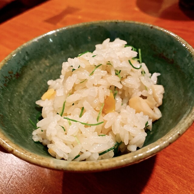 オススメしていただいたあこや貝の土鍋ごはん。