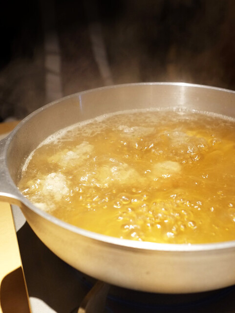 鴨鍋の最初は店員さんが調理してくれ食べ方を教えてくれました。