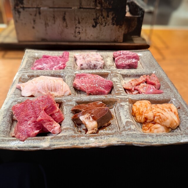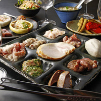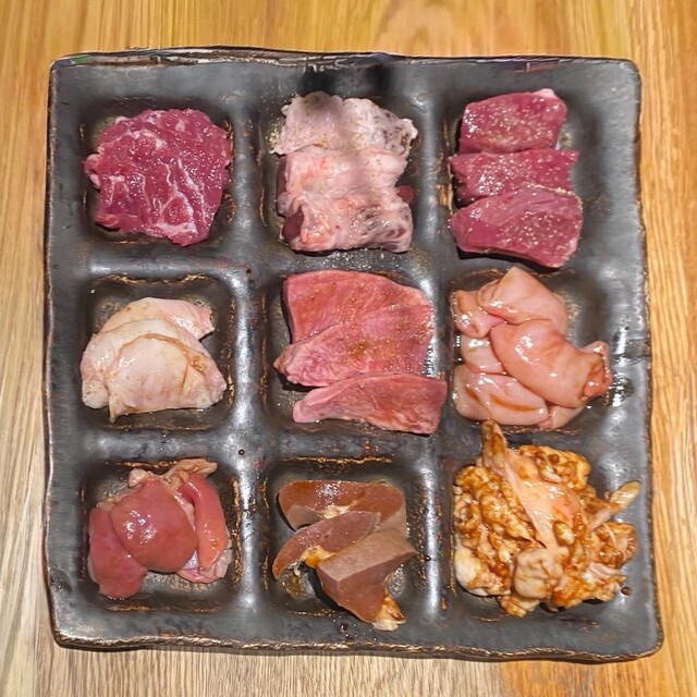 自家製のシャルキュトリーからこだわりのモツ煮込み!そしてもちろんホルモン焼きまで! その日の1番おいしいホルモン9種盛りが楽しめる内容です。初めてご来店される方にも、今まで体験したことない、豚ホルモンの魅力を十分に感じれる内容です。 お一人1皿でご提供しますので、様々なシーンでご利用いただけます。