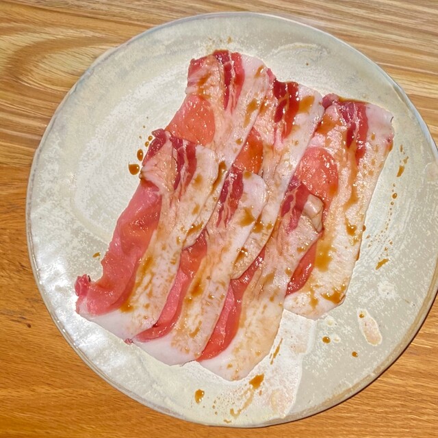鮮度抜群の豚ホルモンを無化調で部位ごとに味付けをし、紀州備長炭で焼くスタイル。毎朝、オーナー自らが朝〆の豚ホルモンを仕入れており、特に水曜日は、あの金子畜産さんの「天城黒豚」特別コースが楽しめる。現在は豚ホルモンの枠にとらわれず、豚正肉を使った生ハム、ベーコン、豚ホルモンカレー、豚骨ラーメンまで、ジャンルレスに提案。これまでの豚ホルモンの概念を変える店として、可能性を追求していく。