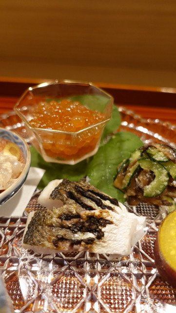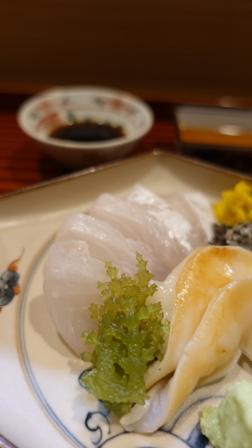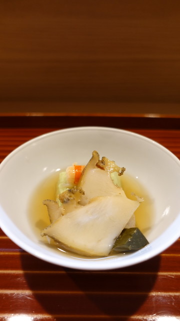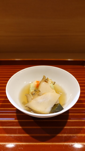 とっても美味しいお懐石料理でした。初めての利用です。荒木町は本当にレベルが高いお店が多いのでいつ行っても楽しみです。今日いただいたのはおいしい胡麻だれのかかった茄子の先付、美味しいおつくり、鯛が本当においしかった。最高でした。そしてはものはいったおすいもの、マツタケとともに。この時期でもはも、美味しいですね。マツタケとの相性も最高。そしておいしい八寸、かんぱち、ひらめおさしみ、あわび、それから美味...