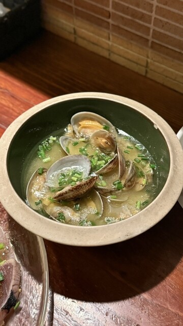 アサリの白ワイン蒸しはスープ最高で,これでパスタとか作りたい!
