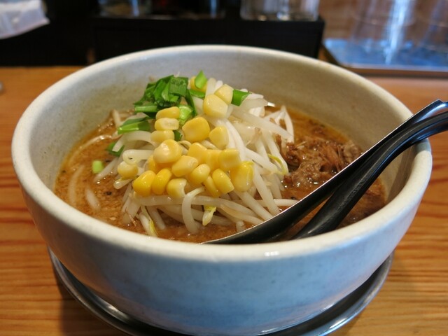 ラーメン屋さんがよく入ってる恵比寿のアーバンハウスビルにありました、つなぎさん なんとなく入ってみたんですが、なかなか雰囲気のあるお店で、 味噌ラーメンに力を入れてるみたいです。味噌ラーメン、味噌つけ麺や担担麺やカレー系など、ほぼ味噌がからみます。 まずは初めてだったので、オーソドックスに味噌ラーメンを注文しました。 8分ほどで着丼です。 盛り付けはキレイです。トッピングはもやし... 詳細を見る