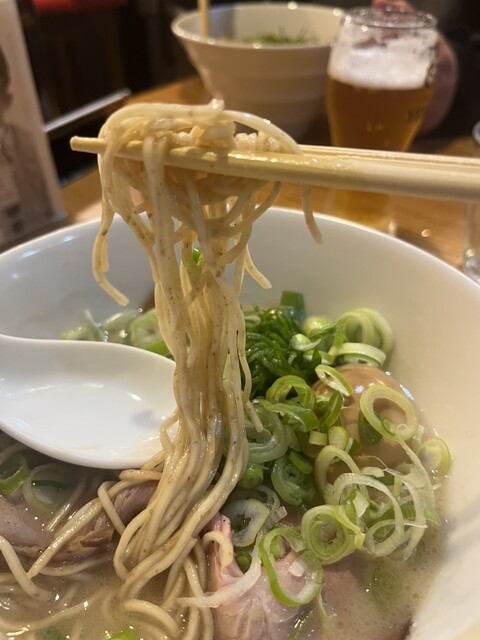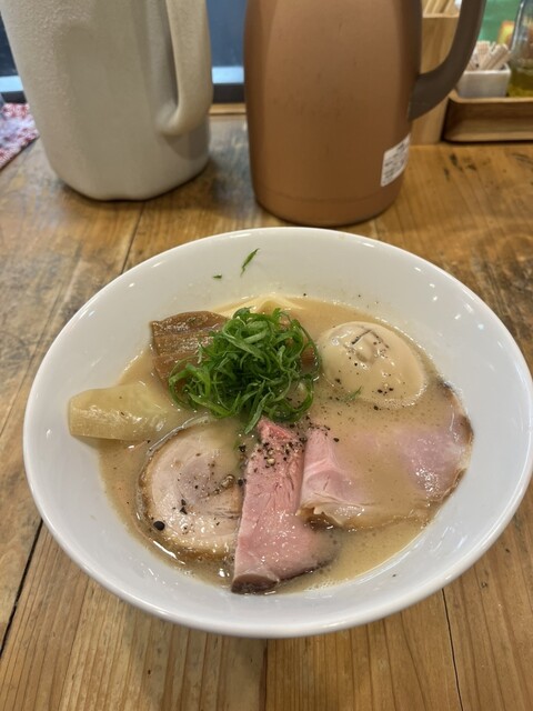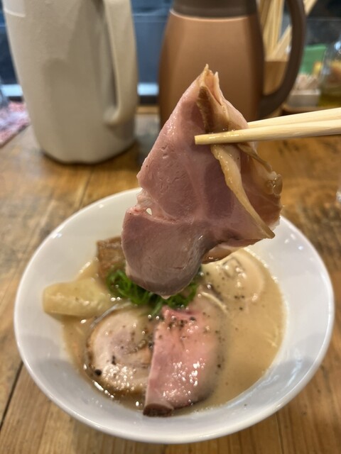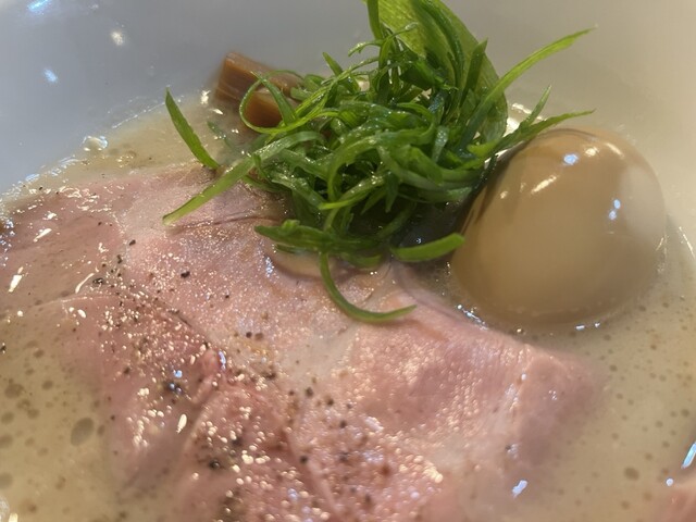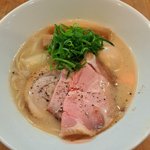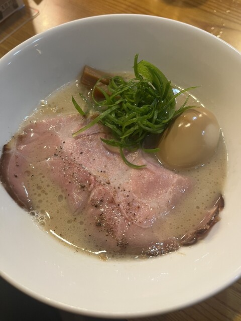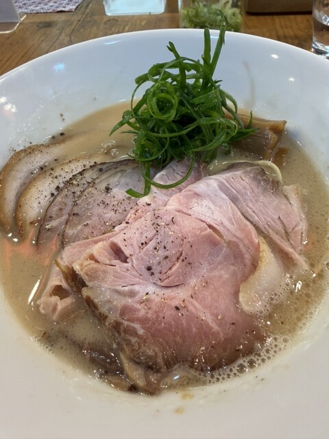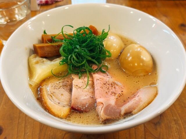 福島出身の店主が東京で出会った豚骨ラーメンの衝撃を胸に、素材本来の旨味を追求。豚ゲンコツ、豚頭をメインに3日間煮込んだスープはとろりと奥深い味わいで、香りの強い焙煎胚芽を使った自家製麺とよく絡みます。3種の部位で仕上げた豚チャーシューや自家製皮のワンタンも絶品。「〆で食べるにはもったいない」と言いたくなる、渾身の豚白湯ラーメンを味わいにいらしてください。チャーシューセットでサク飲みもおすすめです◎
