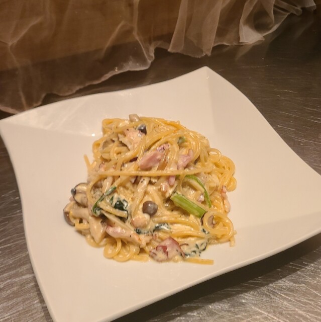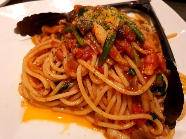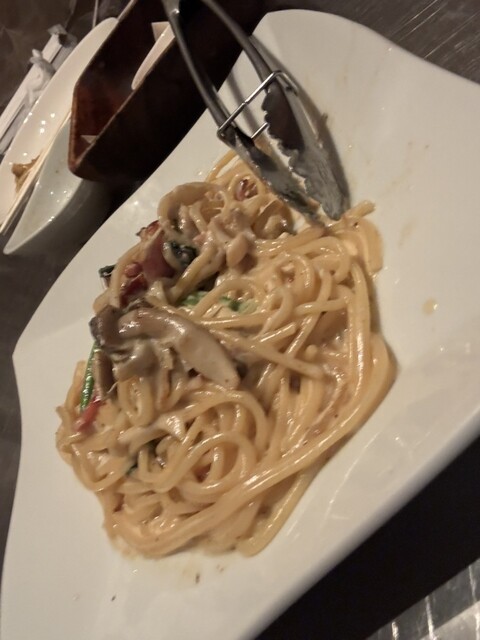 飲み放題付きのローストビーフとカルボナーラのコースをオーダー。卵のアヒージョがとても塩辛かったー。他はまずまず。