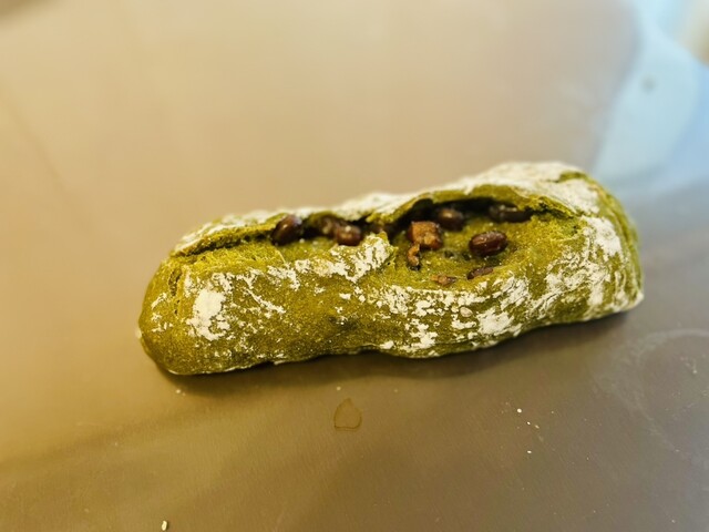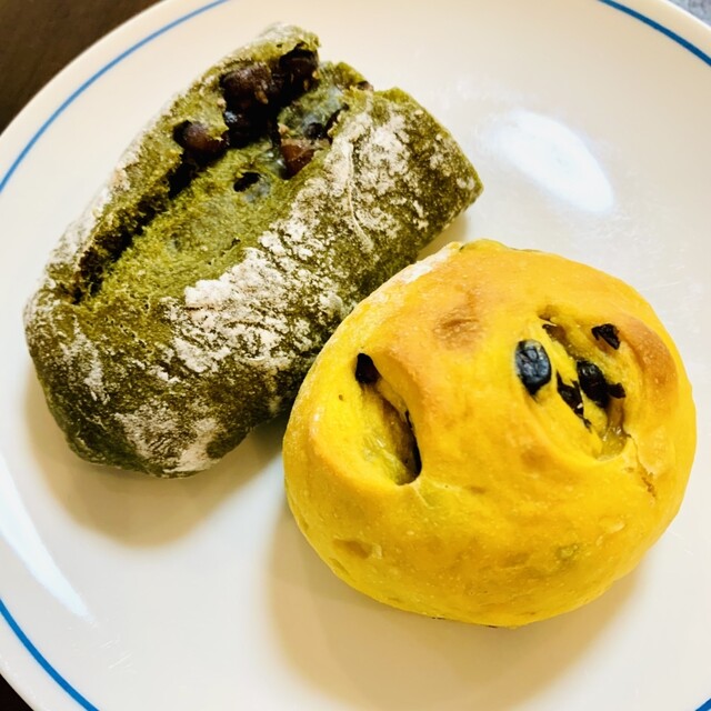 あんぱんは通常のあんこと抹茶餡が入っていて、ずっしり食...