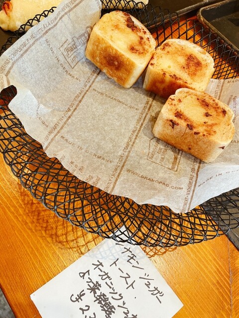看板メニューの「カンパーニュ」は、小麦の旨みと酸味が絶妙に重なり、噛むたびに奥深い味わい。