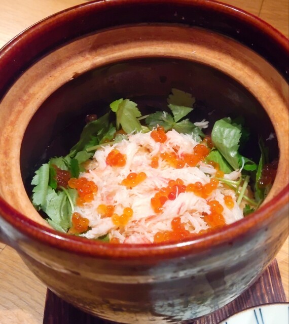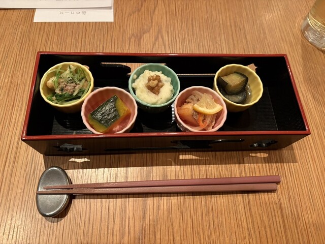 平日の20時に予約して9人で伺いました! コース内容は↓です♬ ----- 【前菜】 名物おばんざい5種盛り合わせ 【お造り】 寒鰤のカルパッチョ 【揚げ物】 広島県... 詳細を見る