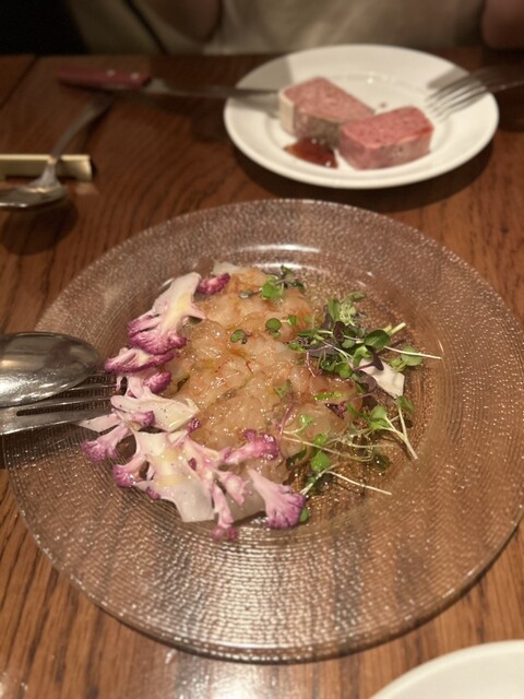★恵比寿駅徒歩7分強、路地裏一軒屋★ 恵比寿駅から歩いて行きましたが、大きな通りの一本裏道なので、曲がるところ注意です。 裏道の住宅街にレストランはあります。 入って一階が厨房とテーブルが少々 2階にテーブル席があり20名弱入れます。 料理はコース➕飲み放題の@6000円 ※... 詳細を見る