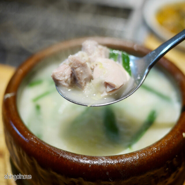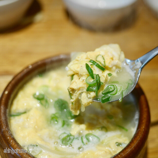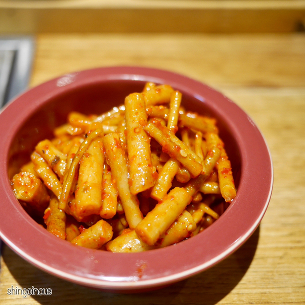 まず印象的だったのが、薄く丁寧にスライスされたきゅうりの浅漬け。瑞々しくて軽やかな酸味が心地よく、最初の一皿としてすっと馴染む感じ。やみつきネギナムルも、シャキシャキ食感とごま油の香りが絶妙で、つい箸が止まらなくなる美味しさでした。