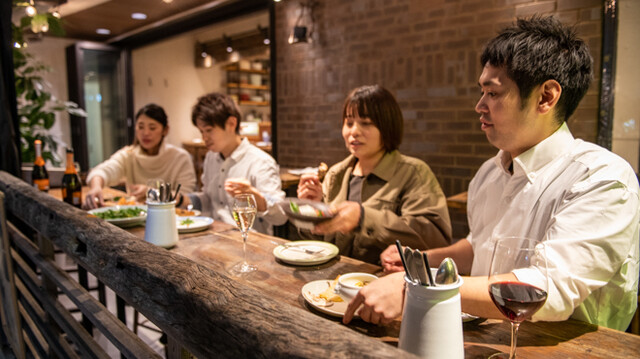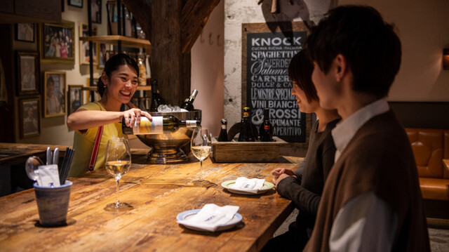 KNOCKコンセプトのがっつりご飯でありつつ、1人でふらっと寄りたい、友人やデートで2人など少人数で楽しみたい方でも気兼ねなく気軽に入れるお店です。ビール、ウィスキーハイボール、イタリア産ワインを多数ご用意しています。