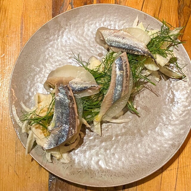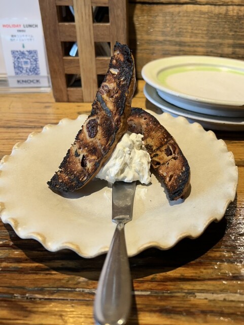 まずはKNOCK名物の、マスカルポーネとこんがりレーズンの「パネ・パンナ」。最初に出てくるとテンション上がるやつで、ふわっと甘くてすごく好きな味でした。